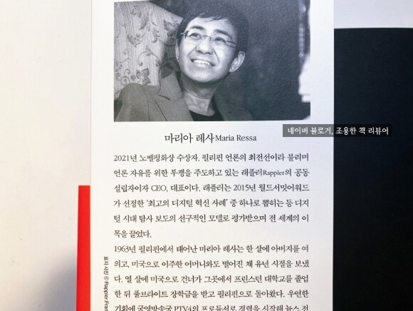 마리아 레사는 필리핀 언론의 최전선이라 불리며 언론 자유를 위한 투쟁을 주도하고 있는 래플러의 공동 설립자이자 CEO라고 한다.