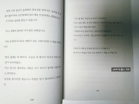 우리는 언제나 결심하고 오늘의 나보다 더 나은 내일의 나를 기대하지만, 각자가 살아온 날들과 시간들 덕분인지 몸에 배어있는 습관과 태도를 바꿔 나가기가 쉽지 않다.