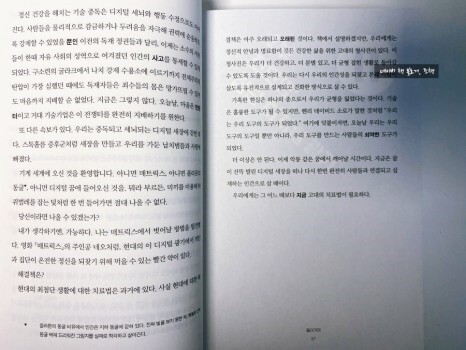 그럼에도 스마트폰 덕분에 지구상의 어떤 사람과도 이야기할 수 있게 되었고 손끝만 움직여 끝없는 정보에 접근할 수 있게 되었지만, 스마트폰의 중독적인 특성 때문에 우리는 진정으로 '연결되지 않은 상태'에 있지 못하게 되었다는 것이다.