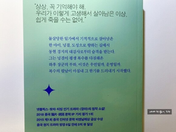 평소에도 소설을 자주 읽는 편은 아니었는데 더군다나 중국 작가의 장편소설이라니. 생소하고 다소 낯선 게 사실이었지만 어찌 보면 좋은 기회라 생각되어 흥미롭게 책을 펼쳤다.