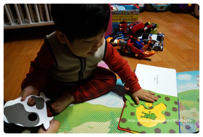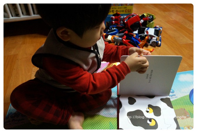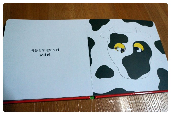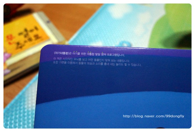 보통 책을 한 권 읽은 후에는.. 관련 내용을 찾아서 어떤 독후활동을 해 줄까~ 고민이 엄청 많았었는데요.. 이 책은.. 정말 착하게도 그런 고민이 하나 필요 없더라구요. 책 자체가 놀이북 느낌이 강해서.. 가면놀이, 동물 흉내놀이가 바로 독후활동으로 연계되더라구요. 무엇보다 아이가 좋아서 스스로 하루에도 여러 번 보게되는 아기대통령, 맞혀봐!! 요거요거.. 저희 집에서도 순식간에 베스트북으로 뽑혔답니다. 앞으로도 쭈욱~~ 이 사랑 받을 것 같은 예감입니다. ^0^ |
