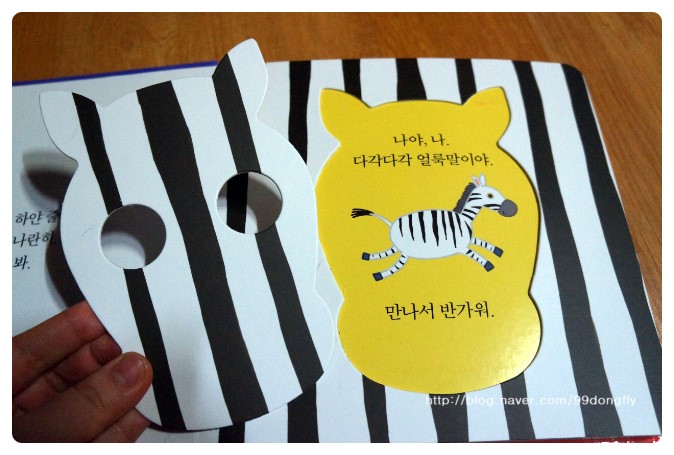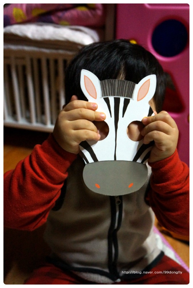 이번에는 얼룩말 가면도 떼어서 갖다 대고 놀아요.