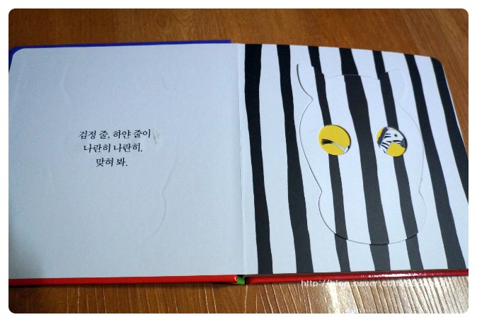 알록달록 무지개 표지를 한 장 넘기니, 이렇게 검정 줄 하얀 줄이 나란히 나란히~~