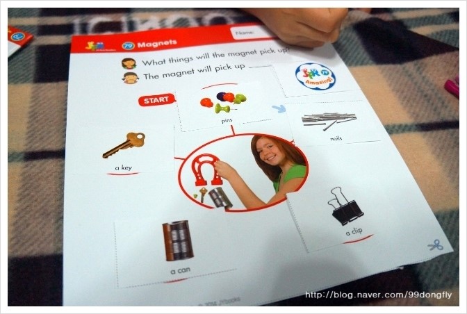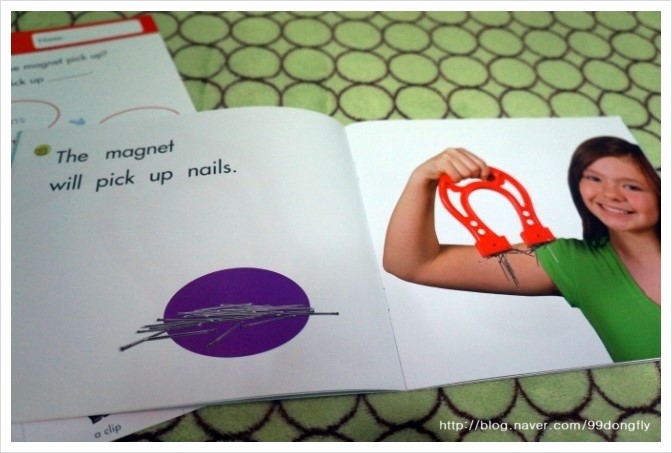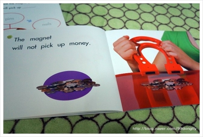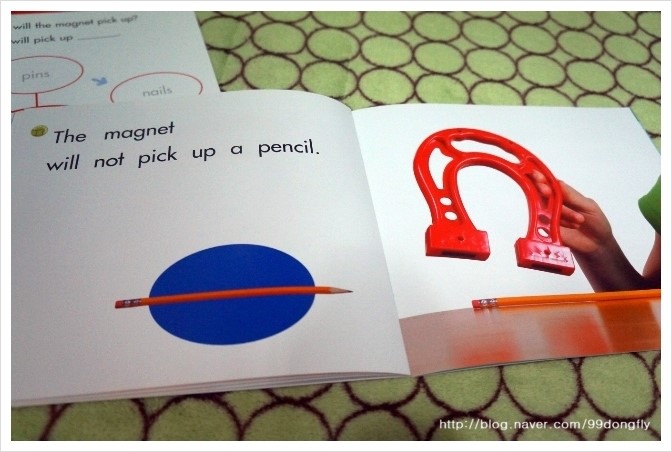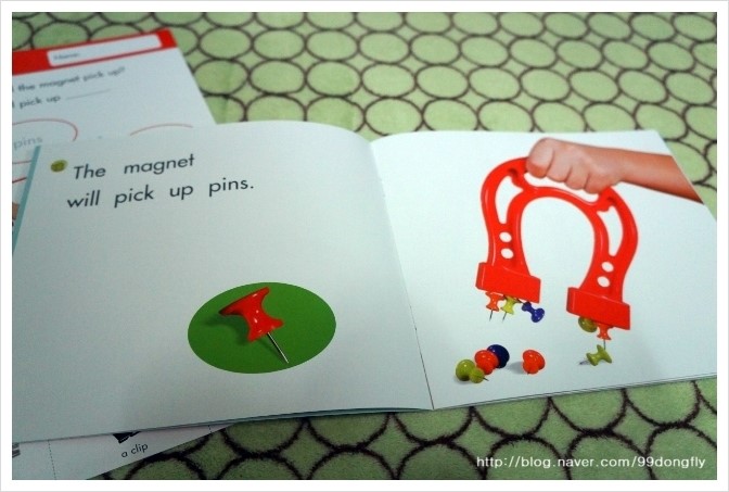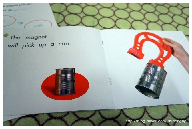 자석에 붙는 물체와 붙지 않는 물체를 주제로 다루어주고 있어요.