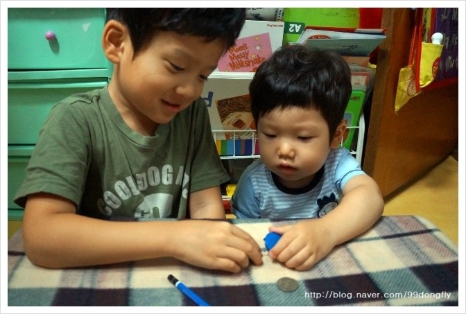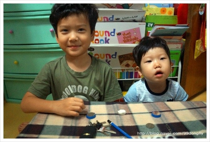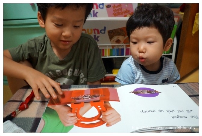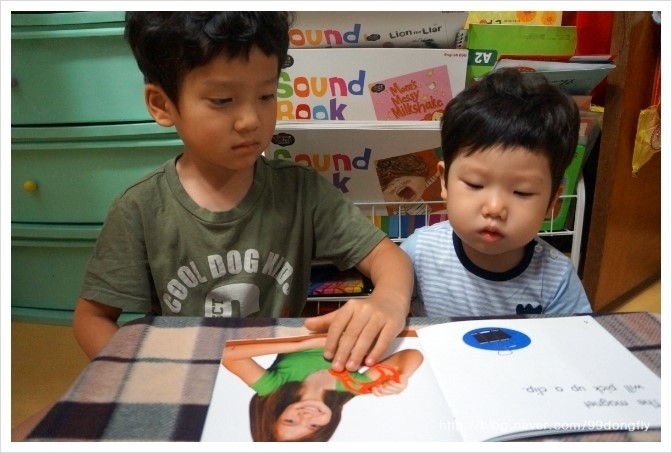 먼저.. 7살 형님과 4살 동생이 나란히 앉아서 책을 살펴 보았어요.