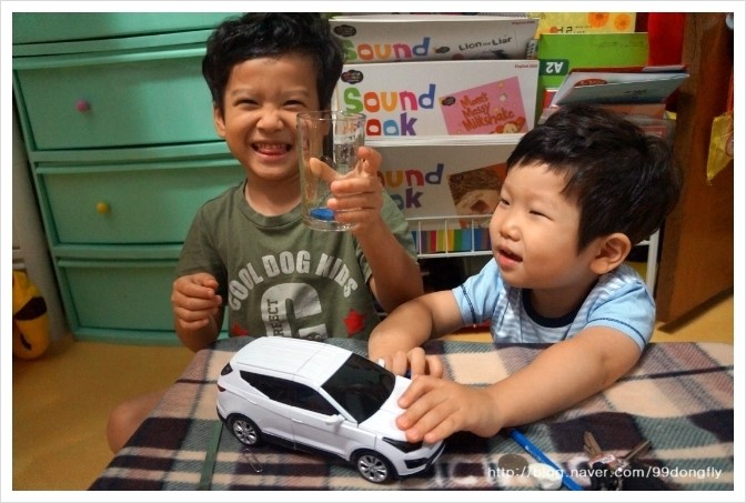 그런데 두 녀석이 이렇게 합심해서 필통 뚜껑을 붙여보네요.
