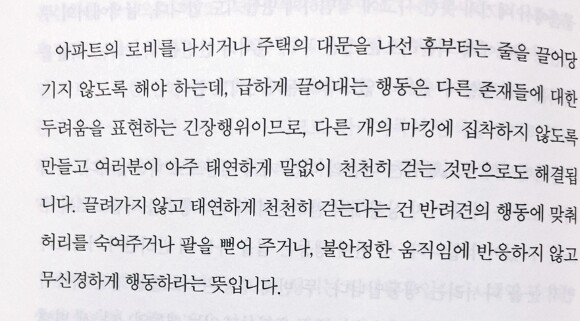 개인적으로 문제 행동에 대해서 개의 특성을 이야기하며 본 책은 이 책이 처음인 것 같아 내가 본 여느 반려동물 관련 책보다도 이 책은 문제행동을 갖고 있는 개에 대해서는 괜찮은 책 같다. 그래서 문제 행동을 갖고 있는 반려동물을 키우는 양육자분들에게 추천한다.