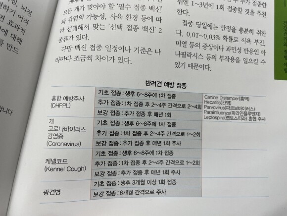 유견기 후에 성년기에 접어들면서부터는 반려견예방접종을 어떤 것을 해야 할지 몰라서 찾아보곤 했었다. 그런데 아래와 같이 맞추면 된다는 말에 나도 이 예방접종을 맞춰야 되나 싶었다.