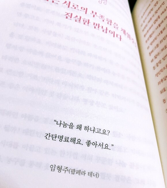세상에 따뜻한 사람들이 많음에도 우리가 쉬이 볼 수 없었던 이유는 “조용히” 따뜻함을 실천하기에 그렇지 않을까 싶다. 드러내놓아 실천하는 것보다는 조용히 아주 따스하게 그 따스함을 필요로 하는 사람들을 도와주기에 받는 사람도 주는 사람도 서로 따뜻함을 느끼지 않을까. 이 책은 바로 따스함을 주는 사람들에 대한 이야기다. YTN 라디오에서 이성규의 행복한 쉼표, 잠시만요를 통해 따스함에 대한 여러 이야기를 전달해서 인지 이 책은 그 따스한 이야기의 일부가 아닐까 싶다.