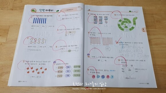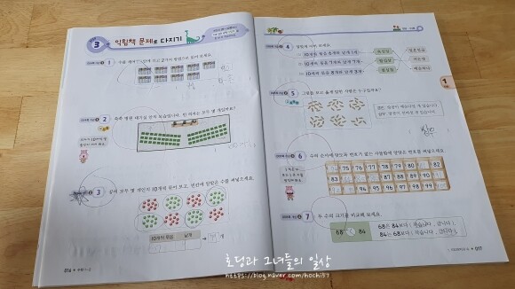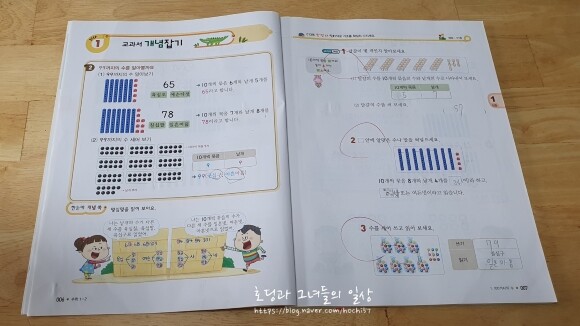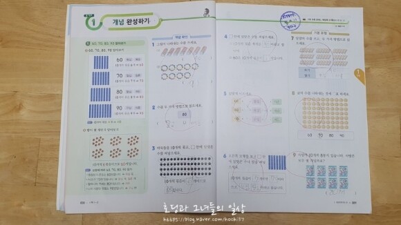 한눈에 개념 쏙 만화를 통해 개념을 한 번 더 학습하고 교과서 핵심 문제를 풀며 원리를 자세히 기억할 수 있게 되어 있어서 처음 배우는 몇십에 대한 개념도 어렵지 않게 익힐 수 있었어요.