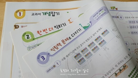 스텝1 교과서 개념잡기-스텝2 한번 더 익히기-스텝3 익힘책 문제 다지기를