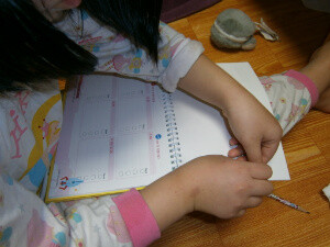 제일먼저 자기 생일부터 체크하는 모습 그리고 월별 스티커 달고 혼자 바쁜 아이 모습
