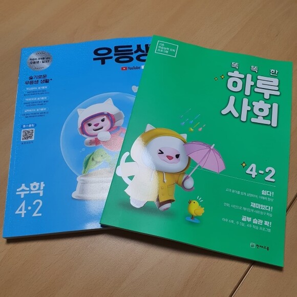 4학년이 되니, 학습에 대한 고민이 생기기 시작하네요. 특히 수학을 싫어하는 딸을 위해 이번 방학에는 학원이나 과외도 좋지만 제가 함께 2학기 준비를 하려고 고민하다가 중고생들의 교과서 천재교육의 우등생 수학과 똑똑한 하루 사회를 선택했어요.
