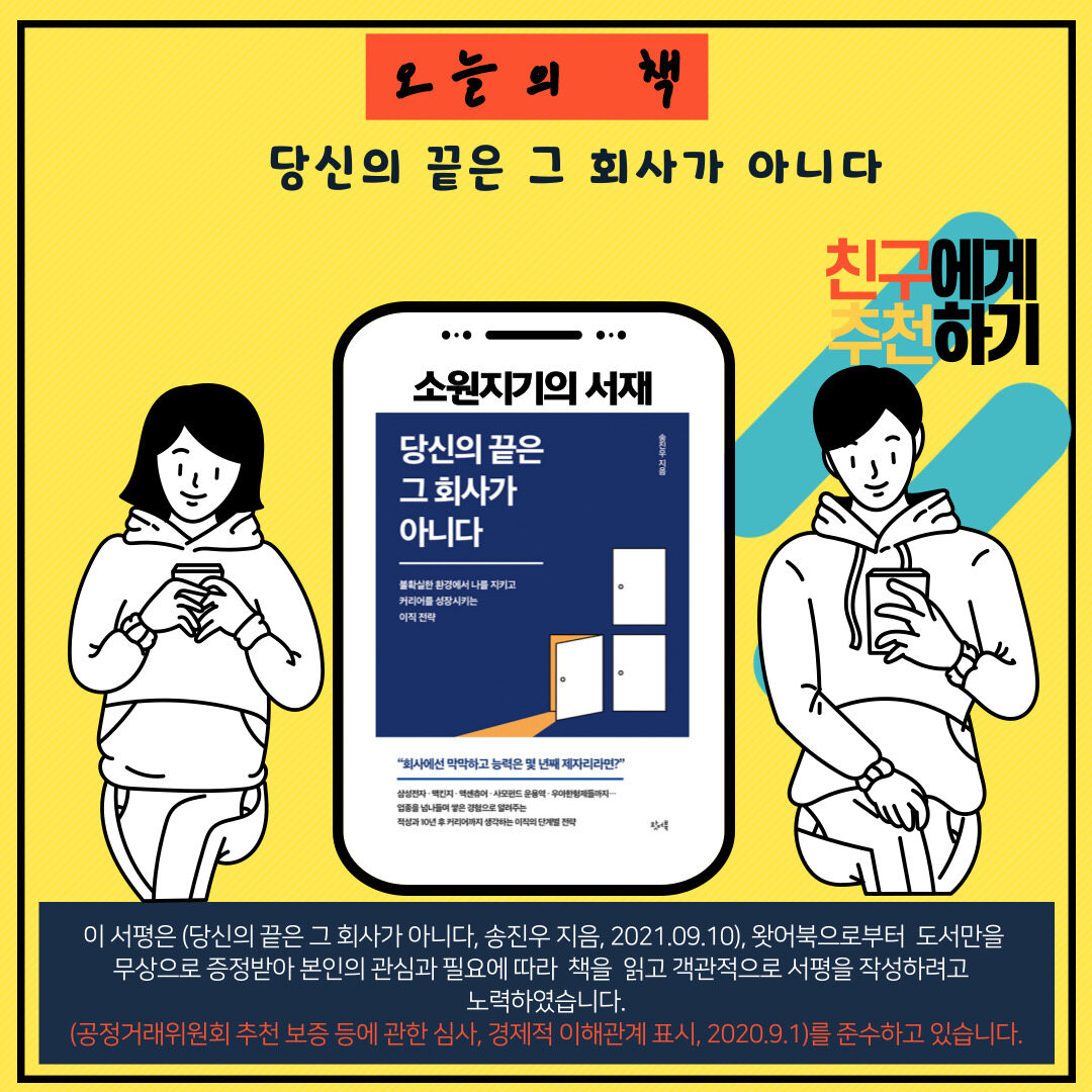 #당신의끝은그회사가아니다 #송진우 #왓어북 #자기계발 #퇴직 #커리어 #이직 #리뷰어스클럽 #신간소개 #신간도서 #책추천 #서평 #서평쓰는남자 #소원지기 #kthigh11