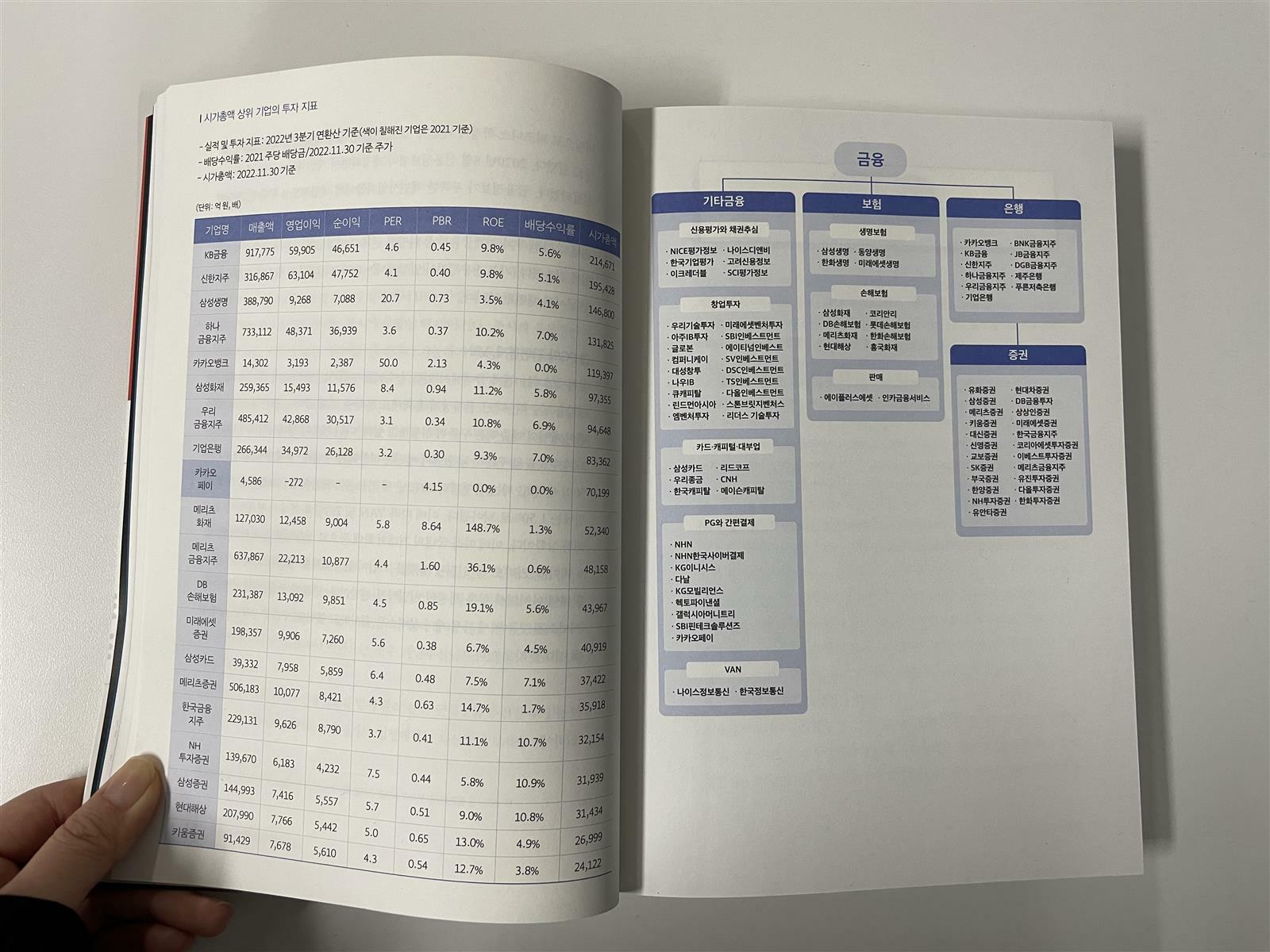 《2023 상장기업 업종지도》의 소개글을 볼까요? "국내 2,200개 상장기업을 25개 업종과 91개 섹터로 분류한 다음 한눈에 조망할 수 있도록 플로 다이어그램 형식으로 구현함으로써 종목 발굴의 길잡이 역할을 하는 책."