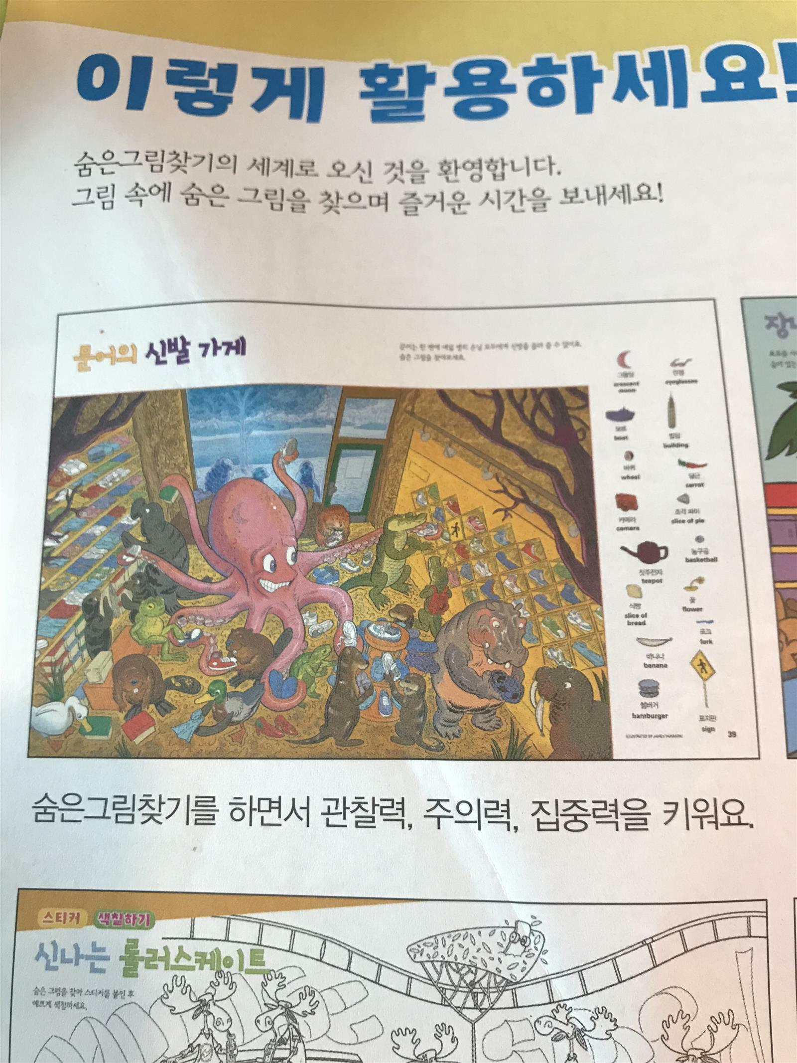 숨은그림찾기, 퍼즐 맞히기, 색칠하기,