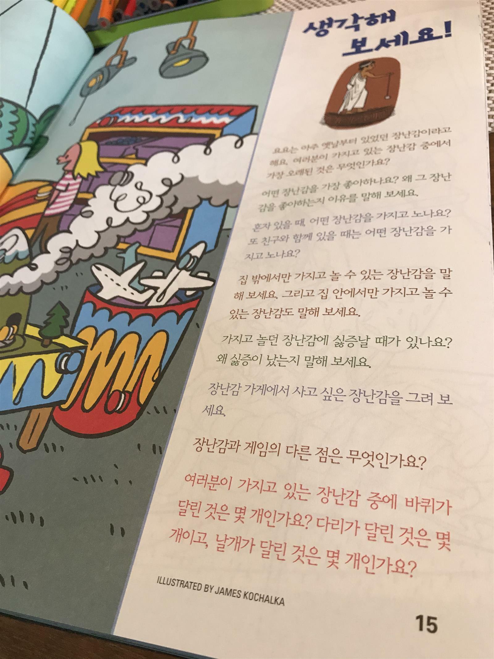 ‘퍼즐 맞히기’는 힌트만 주고, 누가 무엇을 했는지 알아맞히는 퍼즐이다. ‘생각해 보세요’는 하나의 주제 안에서 다양한 질문을 던진다. 단답식 질문이 아닐 뿐 아니라 답 또한 정해진 게 아니어서 대답하는 과정을 통해 생각의 깊이가 더욱 깊어진다.