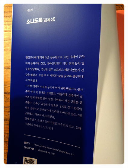 저자는 블로그를 운영하고 있고 블로그에서  글들과 더불어  책에서 건물을 신축하는데 필요한 이야기를 친절하게 설명하고 있다임장하는 사업자등록을 신청하는 방법과 같은 초기 준비단계 부터 저자의 경험담이 쓰여 있다상가주택 타임라인도 알려주고 있는데토지계약에서 건물 신축  사용승인 허가까지 시간을 어느정도 소요했는지도 알려주어서 좋았다
