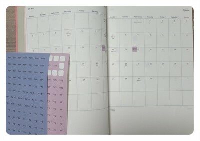 스티커가 있다. 생일, 기념일, 여행, 학원비, 개학, 학교행사, 시험 등.. 아주 융용한 스티커들이 많이 들어 있다,
