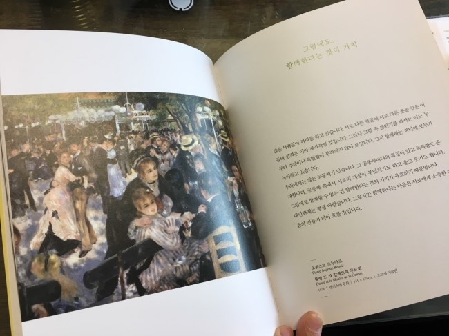 노란색의 겉표지와, 창문같이 도려낸 종이 사이로 보이는 명화의 모습.