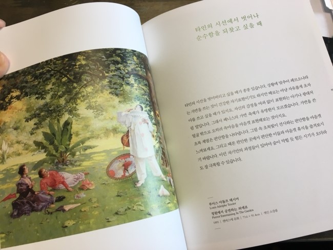 책장을 넘겨가며 어린아이처럼 사랑스러운 그림도 있고, 푸르름이 느껴지는 그림도 있고. 당당한 여인의 모습을 담은 그림도 있었어요.
