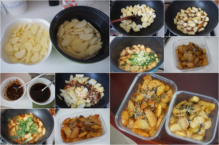 평소와는 조금 다른 매콤달콤한 감자볶음 요리도 했답니다.