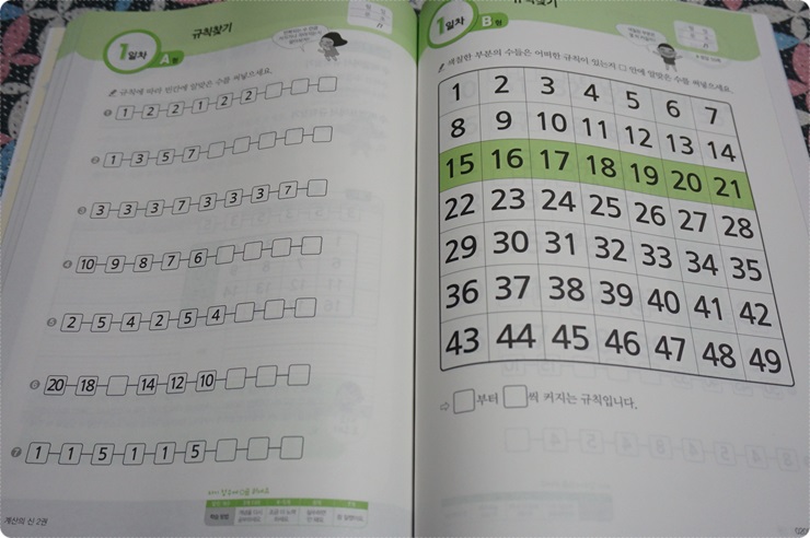 1권은 기본교과과정과 동일한 1~19까지의 수에 대한 모으기와 나누기를 기반으로