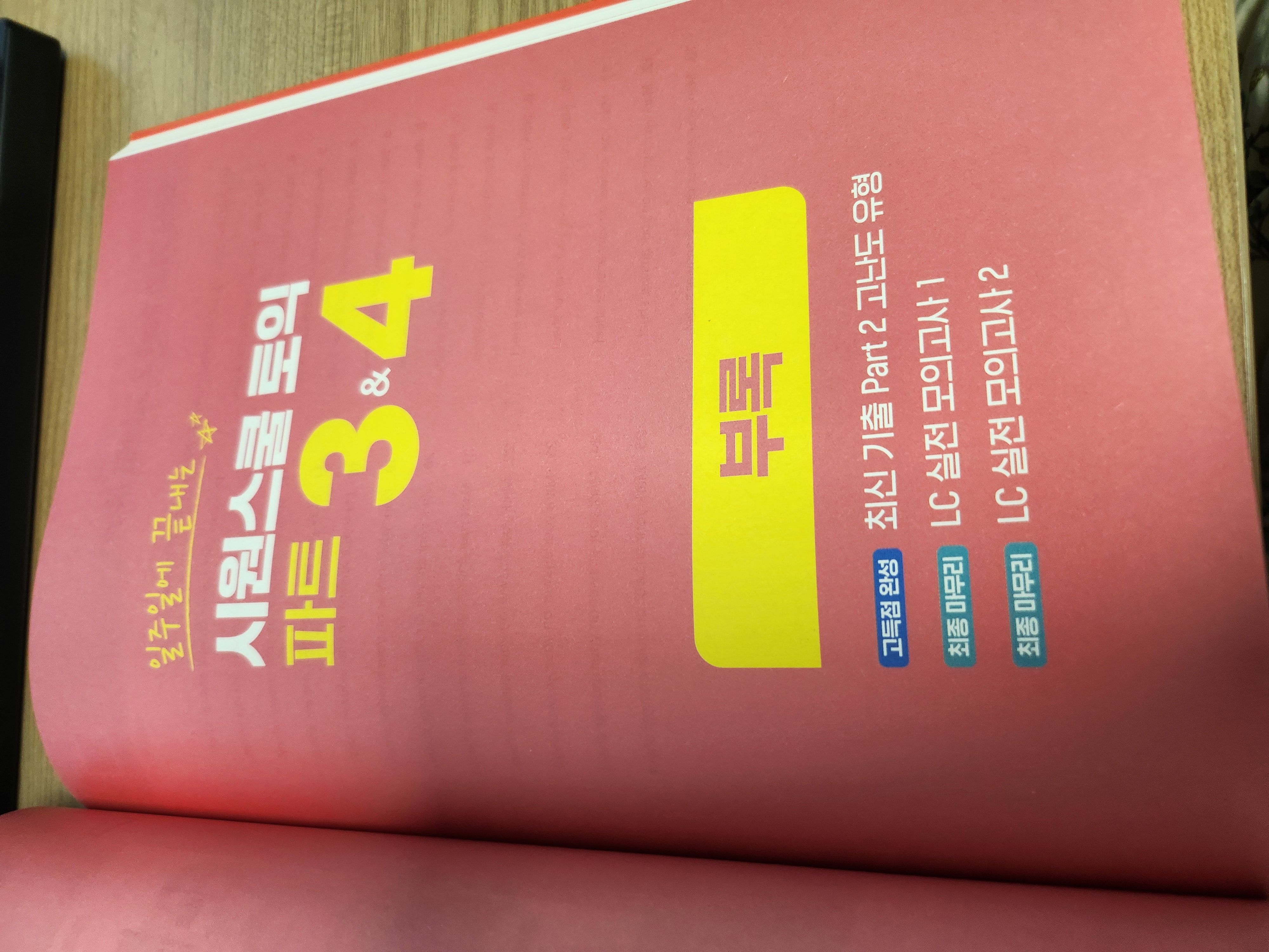 파트 3, 4를 집중적으로 공부할 수 있도록 시원스쿨에서 길지연 선생님의 <일주일에 끝내는 시원스쿨 토익 파트 3 & 4>가 출간되었다. 일주일 집중 학습법으로 짧고 굵게 공부할 수 있다는 장점이 있다.