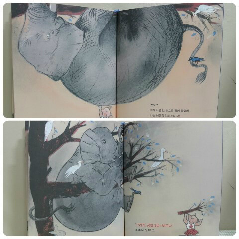 “내가 정말 힘이세지”하며 코끼리에게 말하네요..