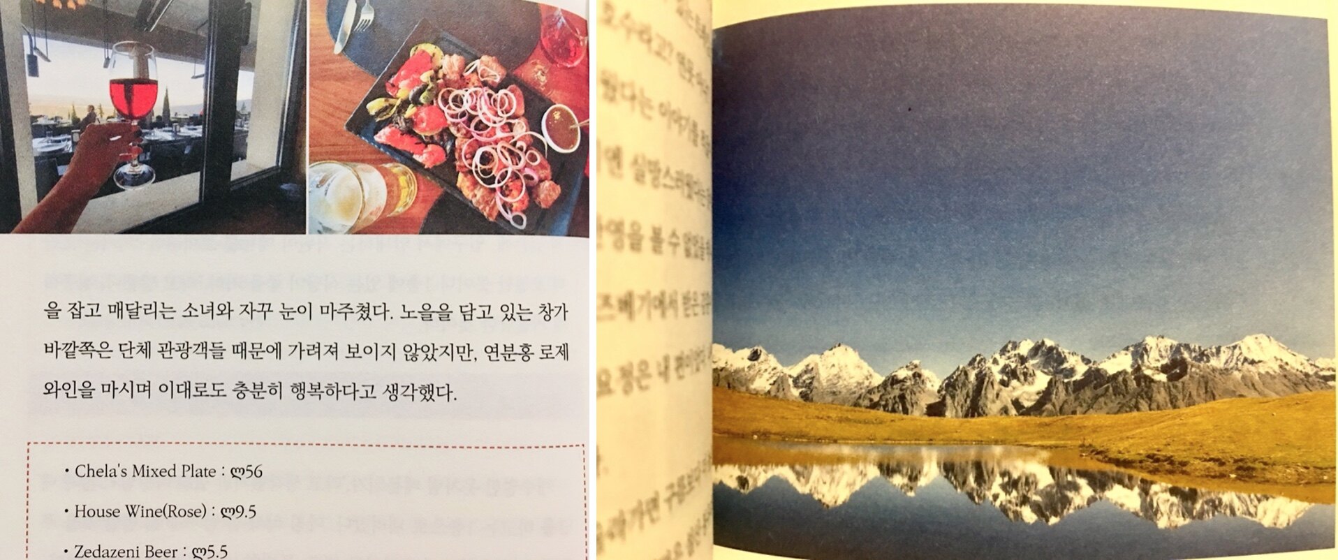 우연인지 <대체 조지아에 뭐가 있는데요?>를 쓴 권호영 작가님도 나처럼 서병용 여행작가님으로부터 조지아를 추천받았단다. 그래서 시작부터 흥미로웠다. 게다가 스위스 사람들이 산에 가려고 오고, 프랑스 사람들이 와인 마시러 오고, 이탈리아 사람들이 음식 먹으러 오고, 스페인 사람들이 춤을 보러 온다니! 이거 뭐, 세계에서 유명한 여행지의 장점만 모아놓은 나라 같다.