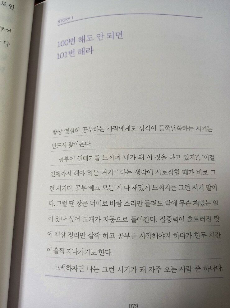 지은이는 지난 세월을 돌아보며 딱 한가지 후회하지 않는 것이 있다면, 바로 공부다라고 말하고 있어요.
