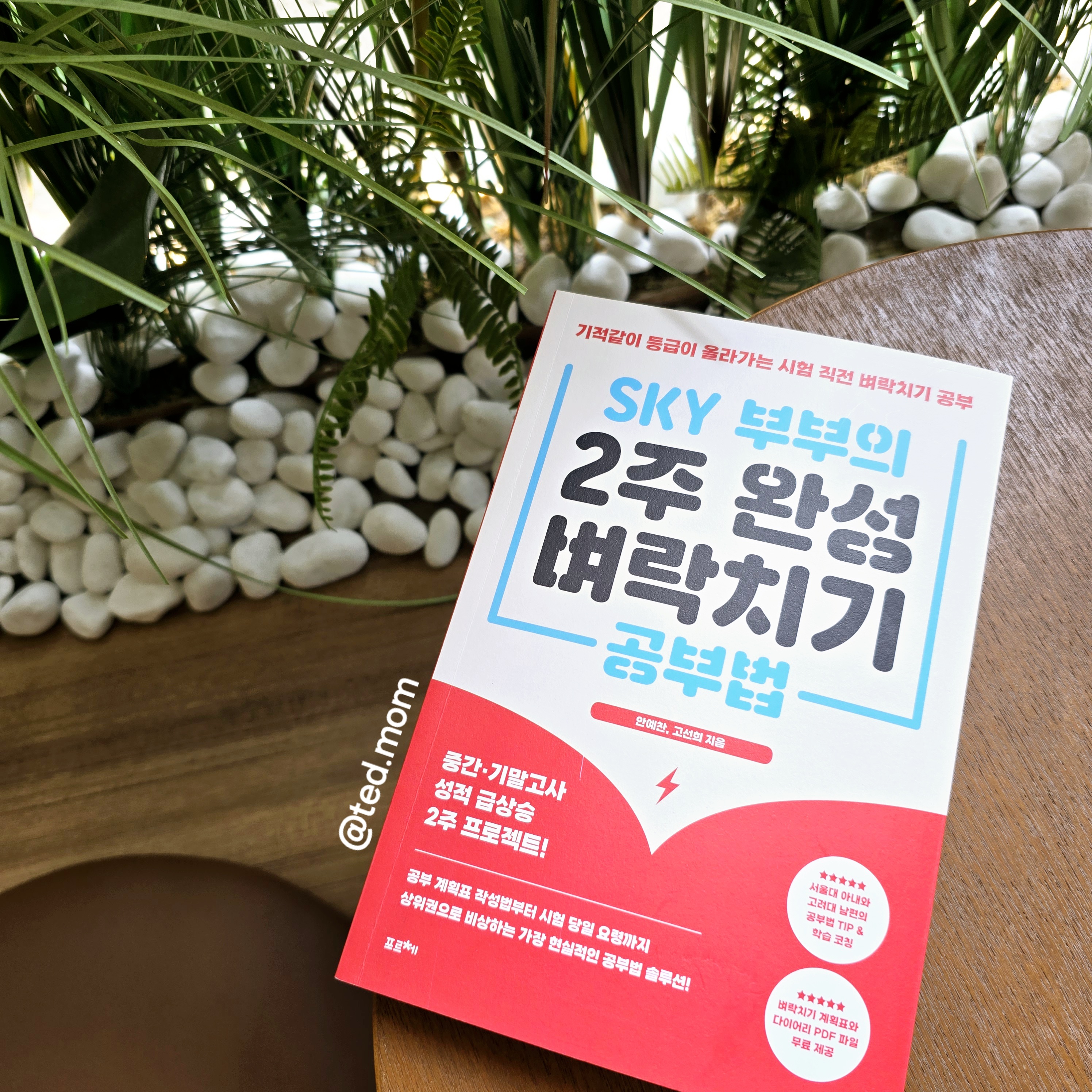 #SKY부부의2주완성벼락치기공부법#기적같이등급이올라가는시험직전벼락치기공부책 제목에 먼저 혹~할 것이다.고려대 남편의 효율적인 공부법에 전교 1등 서울대 아내의꿀팁을 더한 전략적인 학습 코칭책이다.부모님이 먼저 읽고 아이에게 도움을 주셔도 좋고,10대 청소년이 정신차리고 스스로 읽으면 더 좋은 책!하지만 이 책을 읽는다고 저절로 성적이 오르진 않는다.알았으면 일단 알려준대로 해 보는게 더 중요하다.그래서 저자는 평상시 안 하더라도 중간, 기말고사 전딱 2주의 기간동안만 열심히 해도 성과가 나올 수 있도록현실적인 솔루션을 제공하고 있따.- 벼락치기 계획표와 다이어리 PDF 파일 제공(책 속 QR코드 다운로드 가능 - 인쇄용/태블릿용)저자가 말하는 '벼락치기'는 바로 #최단시간고효율공부'최소한으로 공부하면서 최대한의 성적을 낼 수 있는효율적인 시험 준비 방법'이다.아무 것도 안하고 준비없이 팽팽 놀다가시험 하루 전날만 하는 척 하는 벼락치기 공부가 아니다.책을 꼼꼼히 모두 읽은 나의 느낌은일단 최상위권은 이 책이 필요 없겠고,중상위권은 체계적인 계획과 요령을 조금 장착하면상위권 진입이 충분할 듯 싶고,중하위권은 마음 먹고 시작할 수만 있다면분명 매우 큰 효과를 볼 수 있다고 확신한다.점수대별 자기 진단에서부터 계획 세우는 방법,시기별 공부 요령, 시험 보는 요령까지자세하게 담겨있는데.. 공부법도 공부법이지만인생 선배, 인생 멘토로서의 조언도 아끼지 않고 있었다.일단 현실적으로 할 수 있는 최소한의 노력을 해보자는 응원으로 학생 스스로의 작은 성공 경험,성적 상승을 비롯한 성취를 이어갈 수 있도록돕고자 하는 마음이 글에서 느껴졌다.p.32 시험 기간 전의 평소 공부를 어느 정도를 쌓았건 간에