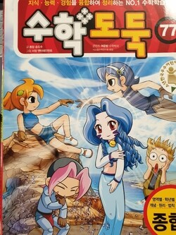 책을 받자마자 바로 읽고 또 읽는! 아이가 최애하는 수학도둑 77권입니다. 다 읽고나면 다음권 나오때 꼭 말해달라고 꼭 사달라고 말하면서 나왔어? 계속 물어봐요. 이 책을 읽으며 76권이 기억나지 않는다고 다시 전권보고 또 봅니다. 제가 서평을 쓰려고 읽으니 왜 엄마가 보냐며 또 보봅니다. 더 신기한건 같은 장면에서 항상 배꼽잡고 웃는다는 거에요.ㅎㅎ 예를 들어 트름을 하는 장면이나똥을 싸는데 냄새가 진동을 하는 장면, 이 책에는 많이 없지만 싸우는 장면(사소하게)에서 맞은 인물의 표정 같은 것들 말이에요.