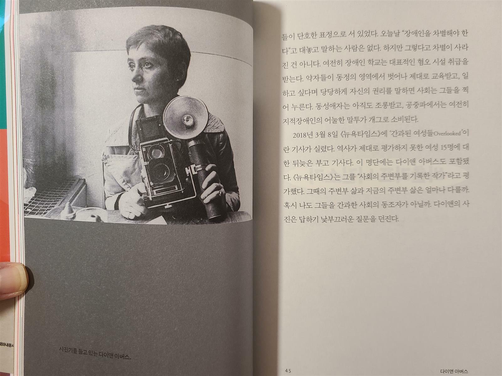 이제 <프릭스>는 컬트영화의 교과서가 됐고, 다이앤은 20세기를 대표하는 사진작가로 인정받는다. 이 변화만큼 사회가 기형, 장애, 소수자를 바라보는 태도도 진보했을까. - page 43