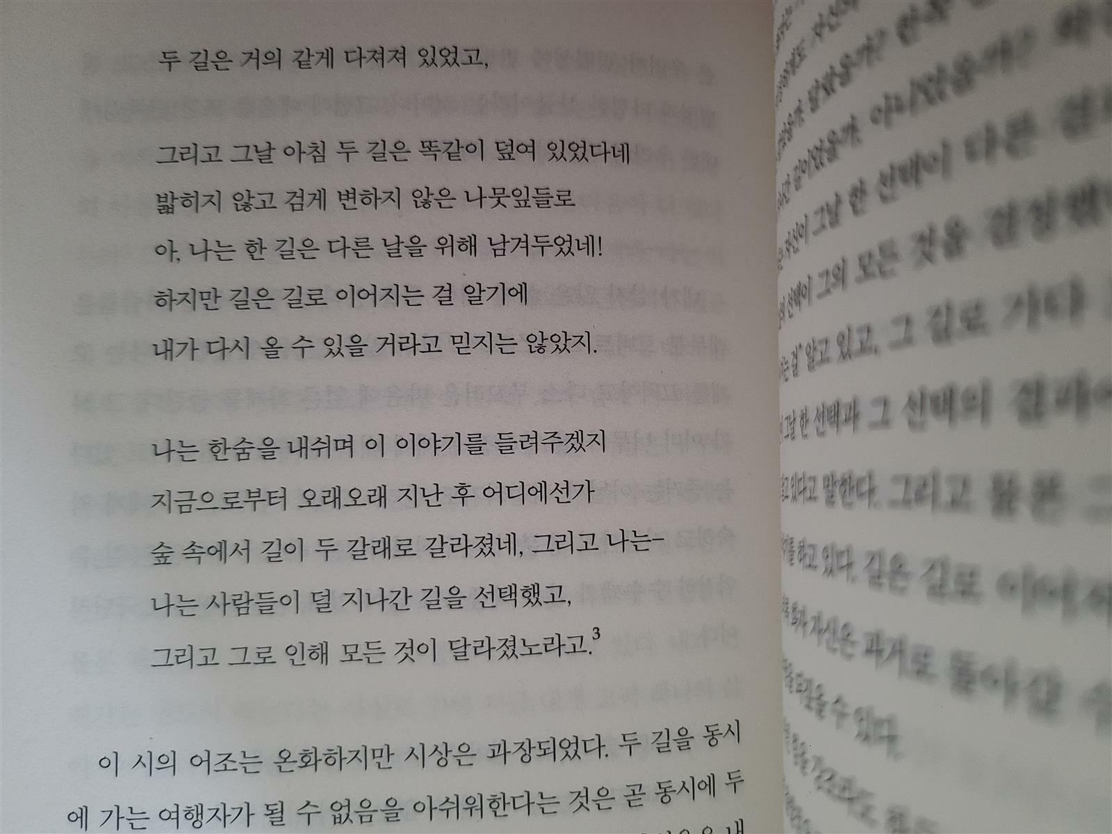 이에 로버트 프로스트의 「가지 않은 길」을 언급하지 않을 수가 없었습니다.