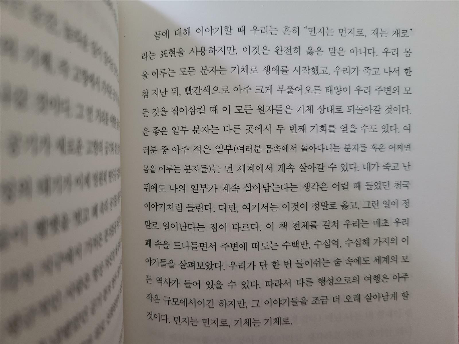 그렇게 해서 저자는 카이사르의 마지막 숨처럼 늘 우리 주위에 널려 있는 '기체'이야기를, 나아가 기체로 하여금 지구의 역사에서 일어난 이야기를 하고 있었습니다.