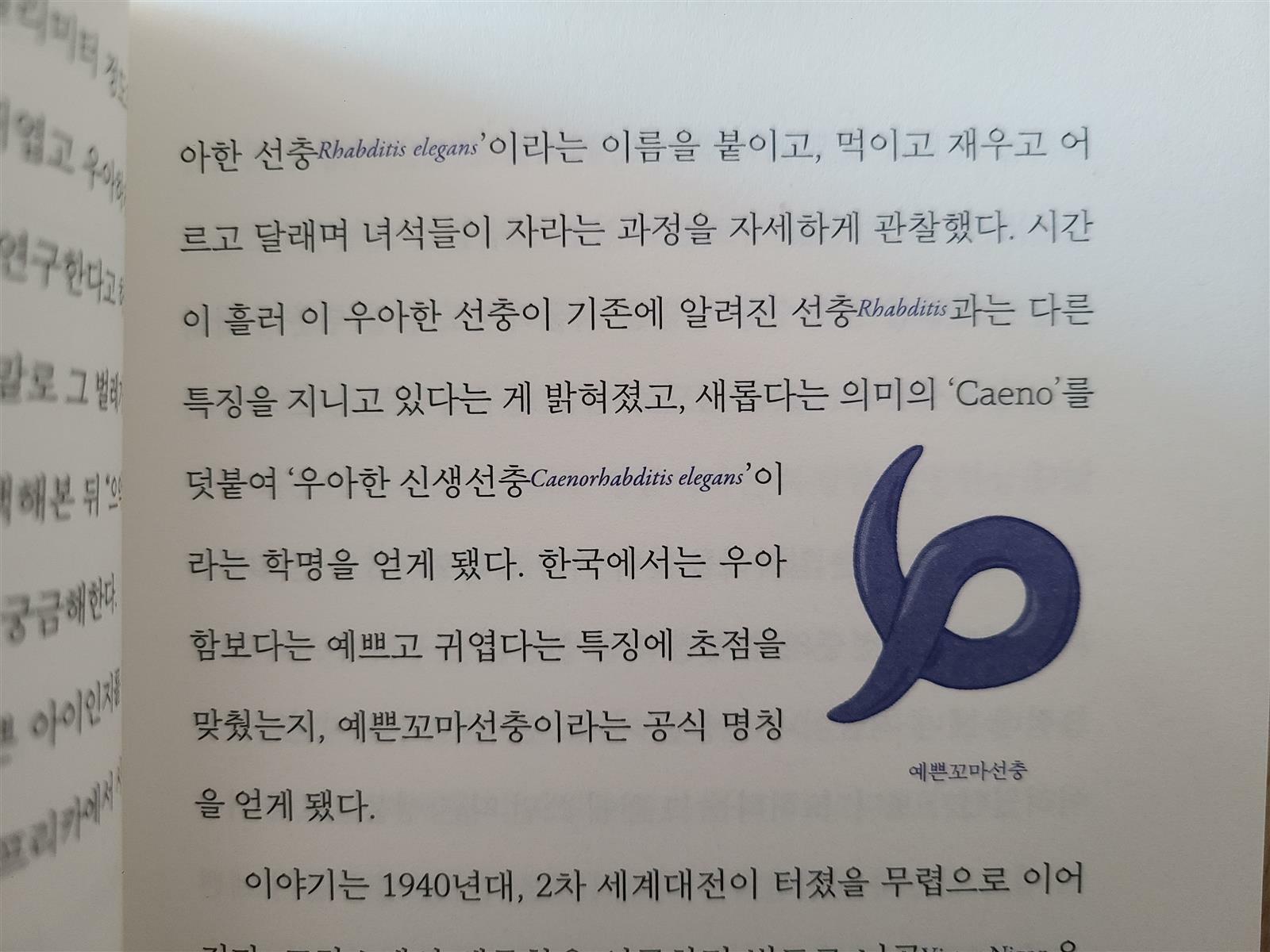 이 예쁜꼬마선충을 몰랐다면 책의 제목처럼 '쓸모없는 것'이라고 여겼을 텐데 절대 쓸모없는 것이 아니었습니다.