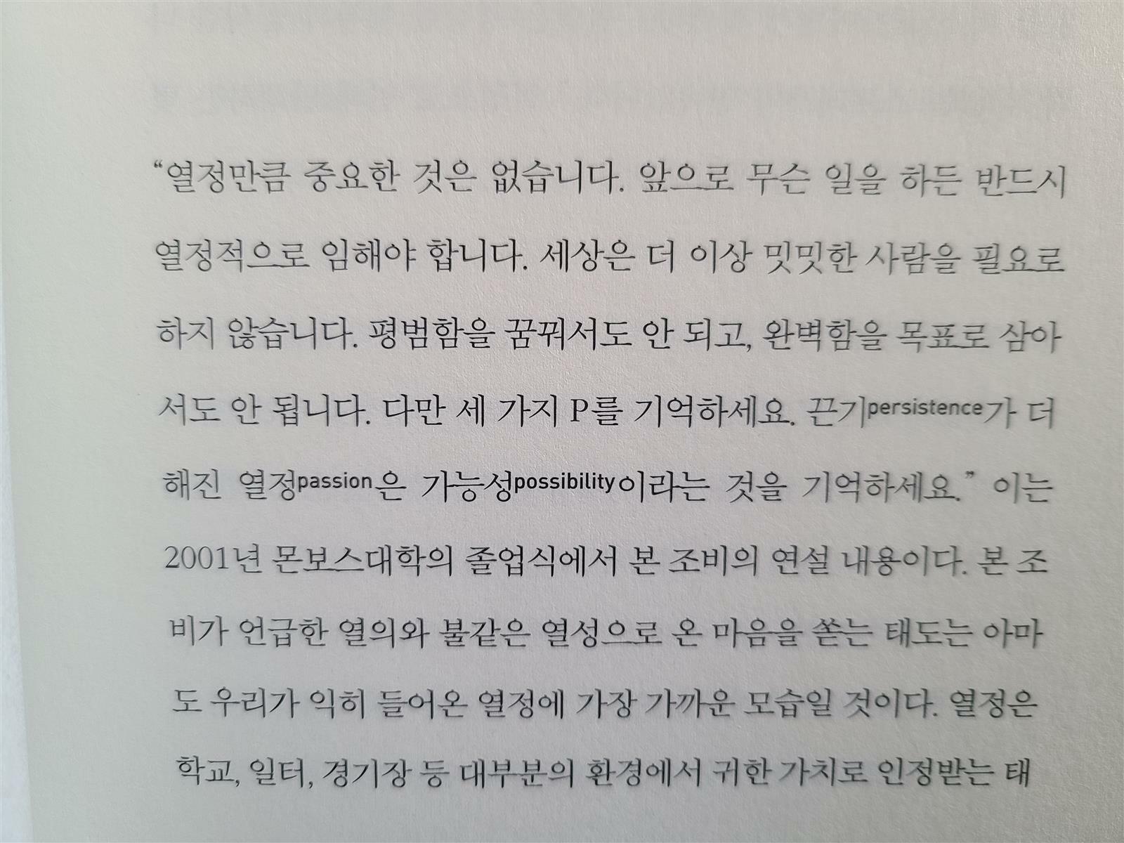 ​특히나 장시간 자신의 열정을 좇다 보면 어쩔 수 없이 성공과 실패를 경험할 수밖에 없지만 마스터리의 경지에 이르는 길은 길고 긴 여정이라는 점을 명심해야 했습니다.