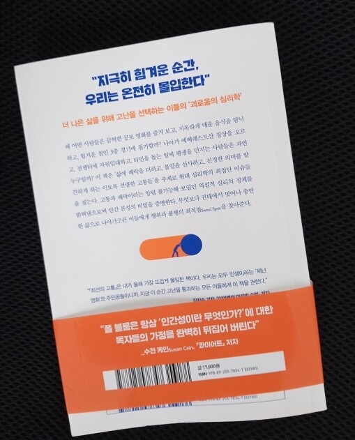고난은 인간의 원죄 때문에 평생 고생한다는 창세기 이야기를 비롯하여 많은 종교적 전통의 일부다. 불교도 그러하고 막스베버가 말하는 청교도적인 노동윤리에서도 핵심을 차지한다. 고난은 지은이 말대로 더 나은 쾌락을 위해서, 젊었을 때 고생은 사서도 한다는 말과 유사하다. 사람들은 왜 무서운 귀신영화를 좋아할까, 왜 청소년은 자해를 일삼는가?, BDSM(구속/훈육/지배/굴복)의 매력은 무엇일까? 비 선택적 고난(내가 어찌할 수 없는 일들-자식이 죽음 등-)은 아픔을 극복하는 능력을 키워줄까? 이 책은 이런 것들에 대해서 말한다. 미하이칙센트 미하이의<몰입>, 빅터프랭클의<빅터프랭클의 죽음의 수용소>에서- 두 책 모두 인간 본성과 인간 번영을 주장, 사람은 어떻게 살아야 하느냐는 점에서 영감을 준다-,지은이가 중요하게 본 것은 쾌락에 방점을 찍어서 강조하면, 고난, 고통은 영원히 마이너스라는 것이다. 쾌락의 정도는 상대적일까, 아니면 절대적일까, 아무튼 고통의 대척점으로서의 쾌락, 자기계발서에서 나오는 것들에 그는 반대한다. 행복을 왜곡하기 때문이다.