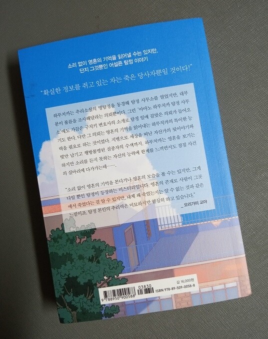 제목부터 흥미롭다. 이 소설의 주인공 아마노 하루치카는 영매? 아무튼, 죽은 사람의 형체가 보인다. 그러나 소리를 듣지 못한다. 즉, 무음이라는 환경에서 죽은 이를 본다. 공한 K<시체를 보는 사나이 1 더비기닝>(팩토리나인, 2022)의 남시보는 죽음을 예견하다. 그리고 시체를 보는 능력을 지녔는데, 이 소설과 함께 읽어보면 흥미로울 듯하다.