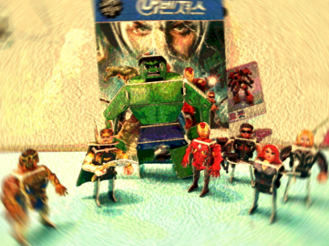 맹이가 택배가 도착했다고 언제 뜯을수 있냐며 애달아 전화한거였어요. 비닐 사이로 보이는 슈퍼히어로들의 포스를 알아챘던 거죠 ㅋㅋ