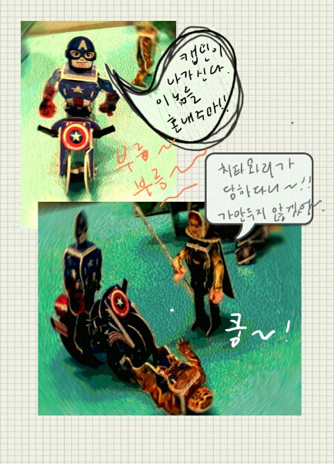 드뎌 캡틴 아메리칸과 아이언맨부터 완성! 둘째는 그거 들고 노느라정신이 없네요.