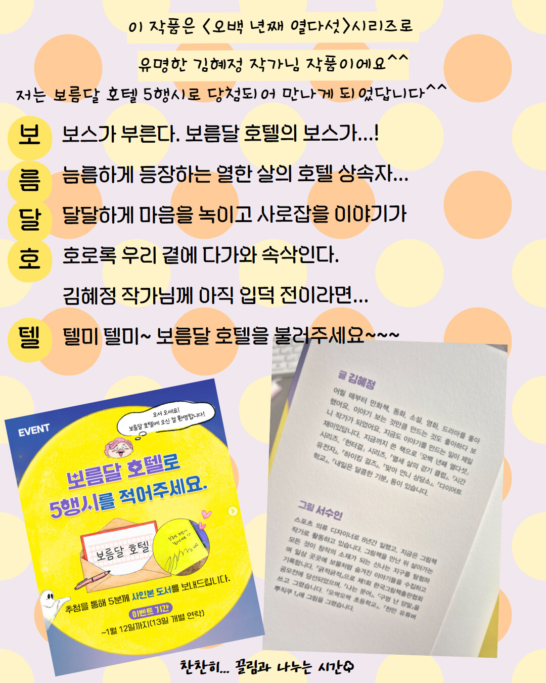 때마침 보름달 호텔로 5행시를 해서 그 덕에 선물로 먼저 받아 보게 되었어요!