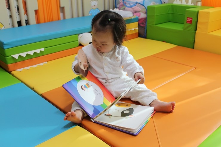 엄마가 곁에 있든없든 열심히 책을 가지고 놀아요.
