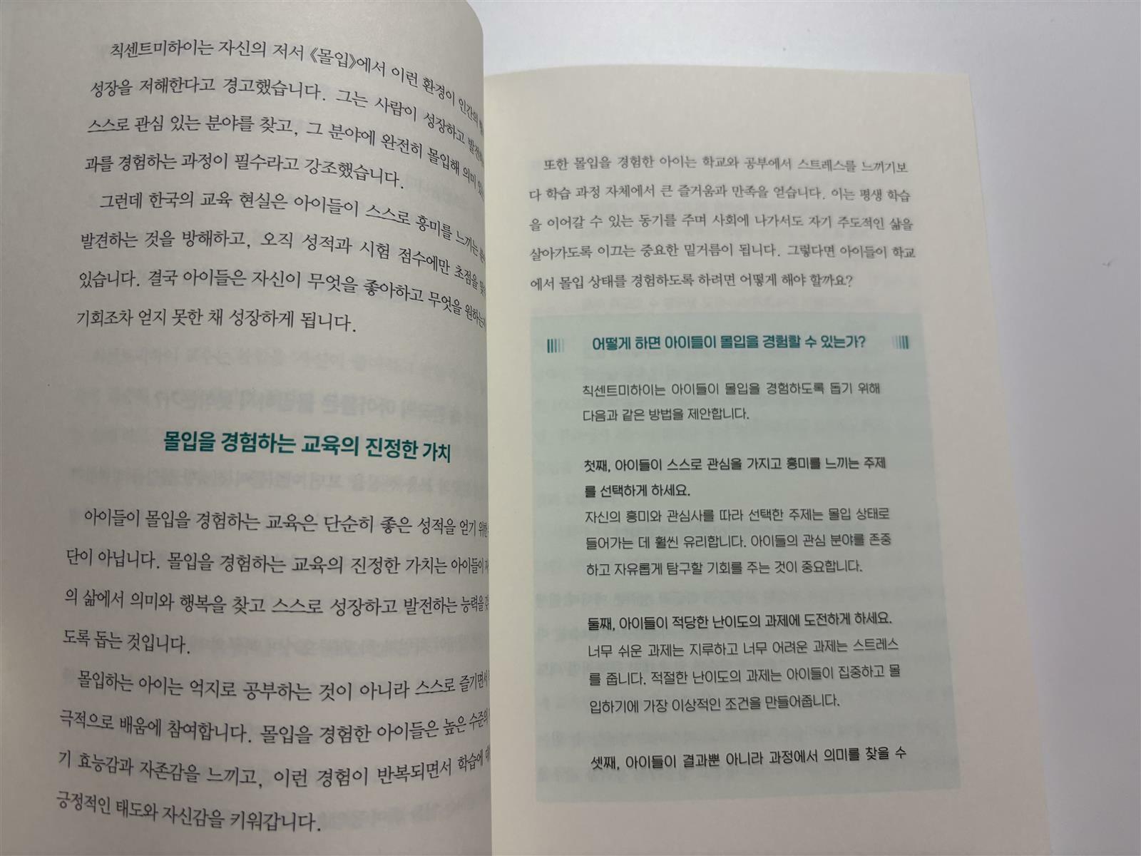 저자는 아이들이 몰입을 경험하도록 돕기 위한 구체적인 방법도 제시합니다.