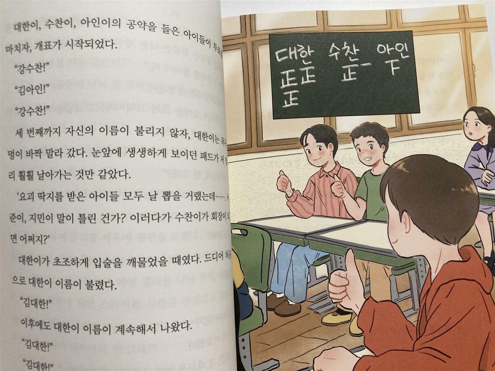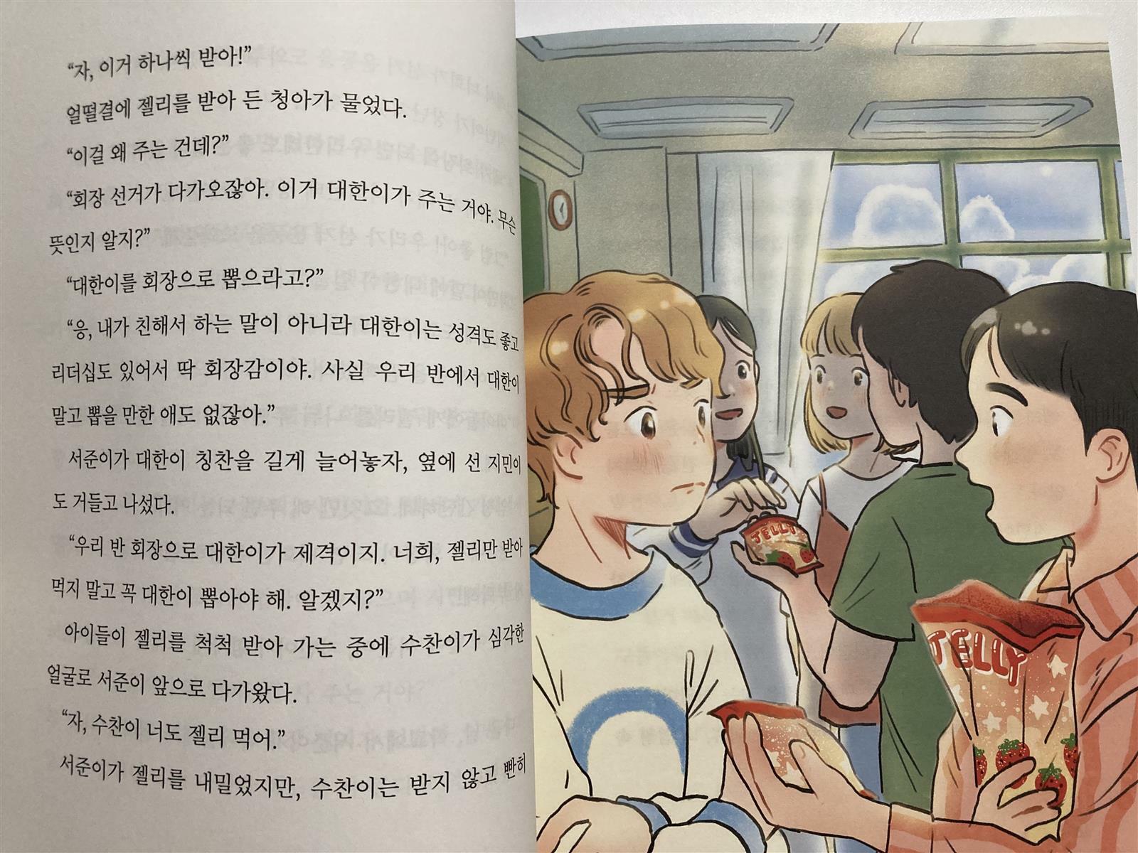 친구들에게 사탕과 선물을 나누어 주어 회장이 된 대한이가 등장하는데요.