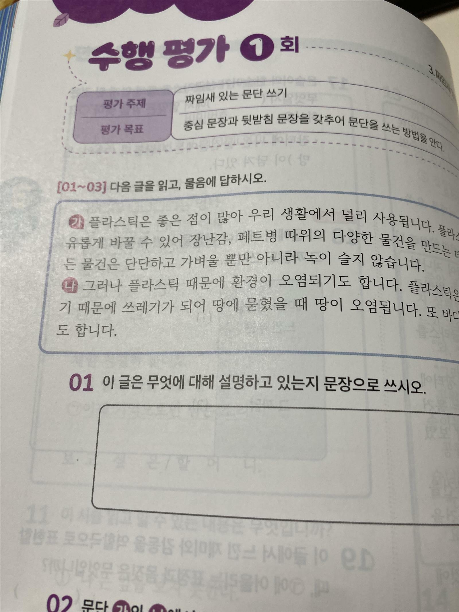 다음 주에 수행평가가 있어 열심히 본책과 평가북을 풀고 있습니다.