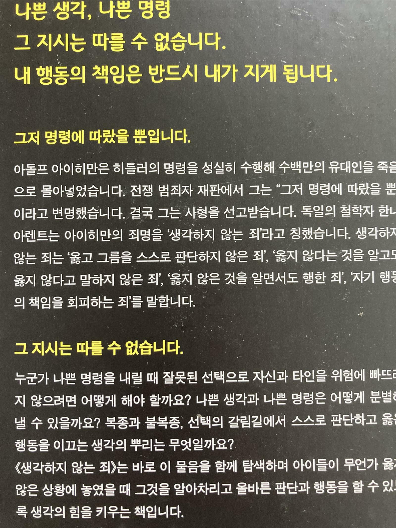 그리고 스스로 판단하지 않은 것이 바로 '생각하지 않는 죄'라고 말해줍니다.