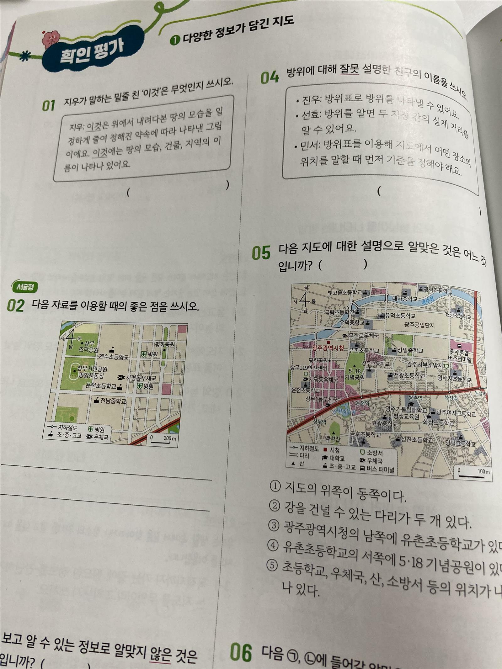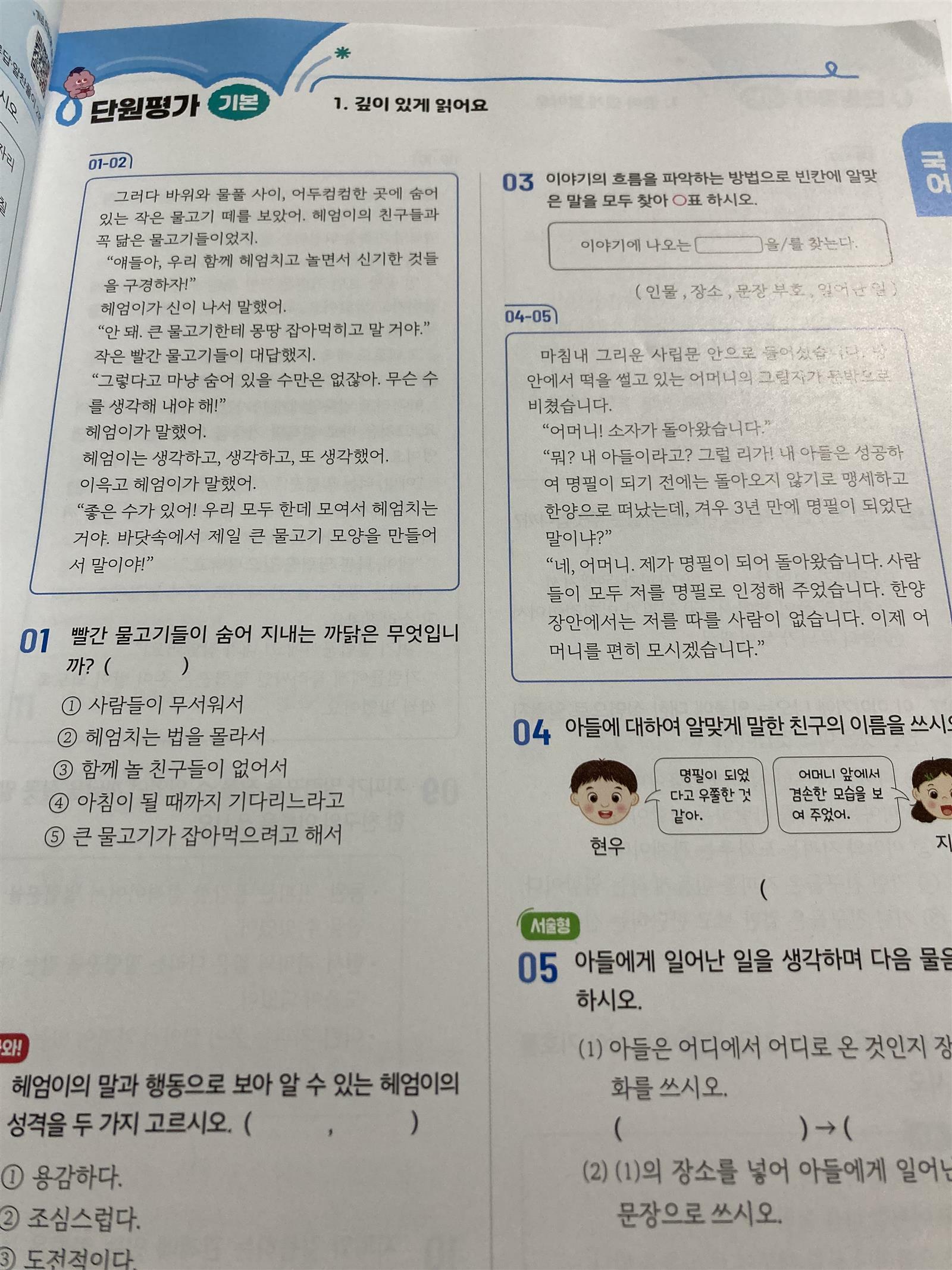 기본 단원평가의 경우 각 지문을 읽고 내용을 생각하며 풀 수 있는 문제들이 주를 이루고,