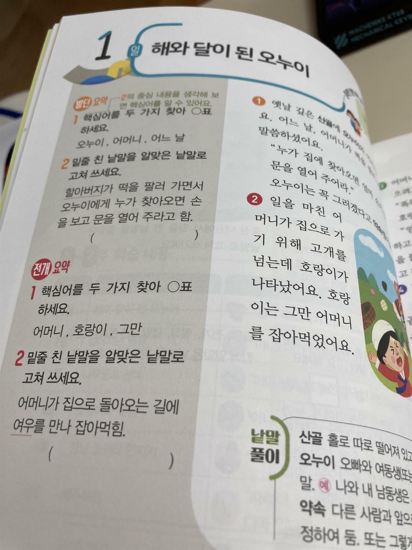 독해의 기본이 발단,전개,절정,결말을 구분하여 이야기를 이해하고 중심문장과 중심단어를 파악하는 것 아닐까 싶은데요. 어린이 첫 독해 기본서라는 생각이 드네요. :)
